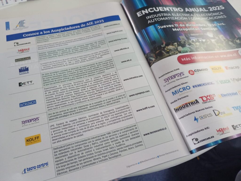 Representando a nuestra Asociación de la Industria Eléctrica – Electrónica de Chile, AIE, tuvimos el honor de participar en la XX versión de Expo Energía 2025 el día 5 de noviembre. Este evento reunió a los actores más destacados de los sectores de Minería, Energía e Industria, así como a diversas medianas y grandes empresas del país. Los asistentes tuvieron la oportunidad de explorar las últimas innovaciones tecnológicas y disfrutar de charlas que marcan las tendencias del futuro energético.
